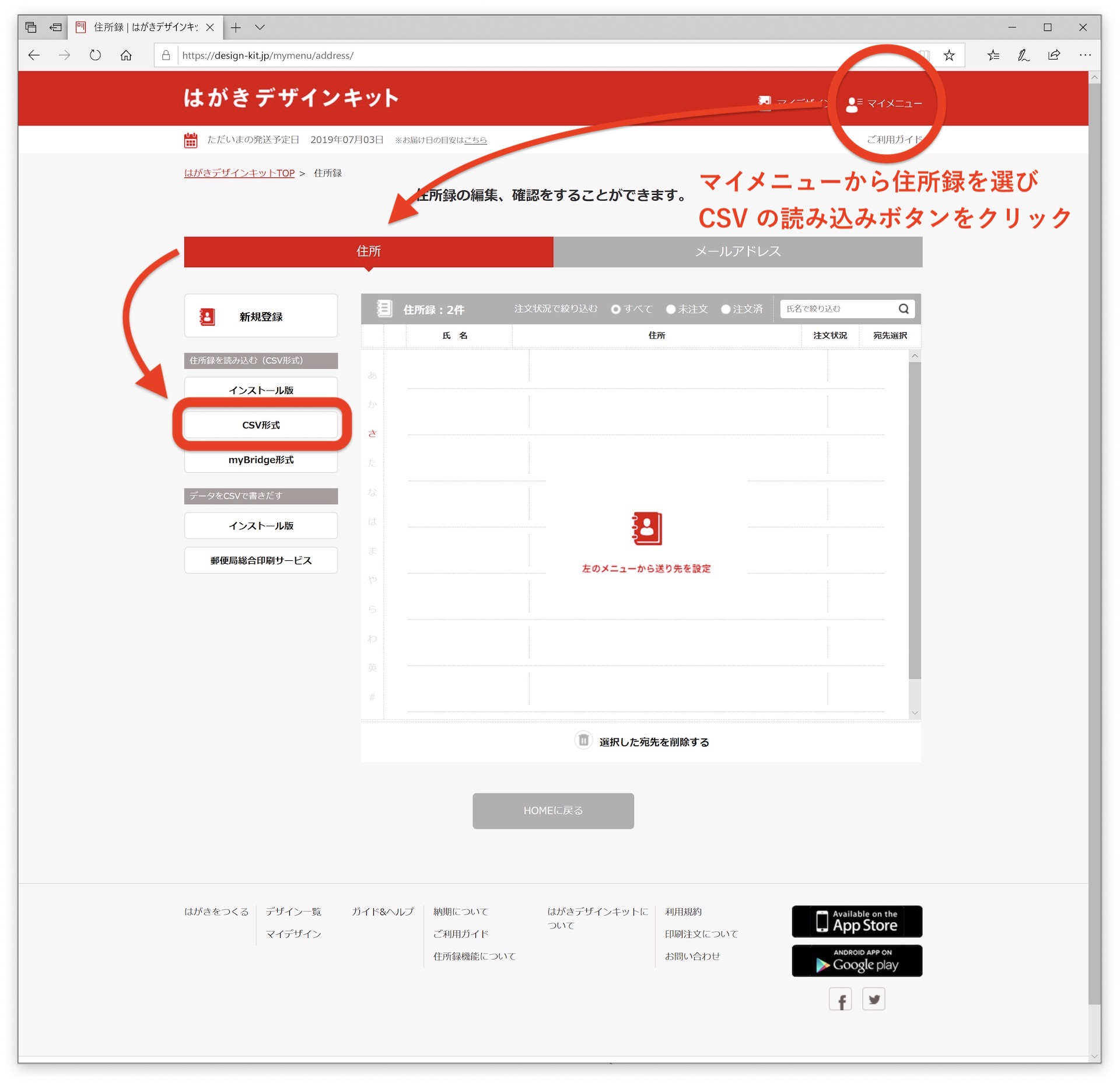 はがきデザインキットの使い方 住所録をつくる 日本郵便株式会社