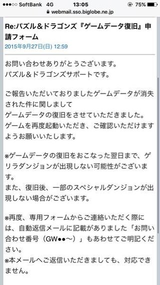 パズドラのデータが消えてしまったので復旧申請をしたところ このような返信がき Yahoo 知恵袋