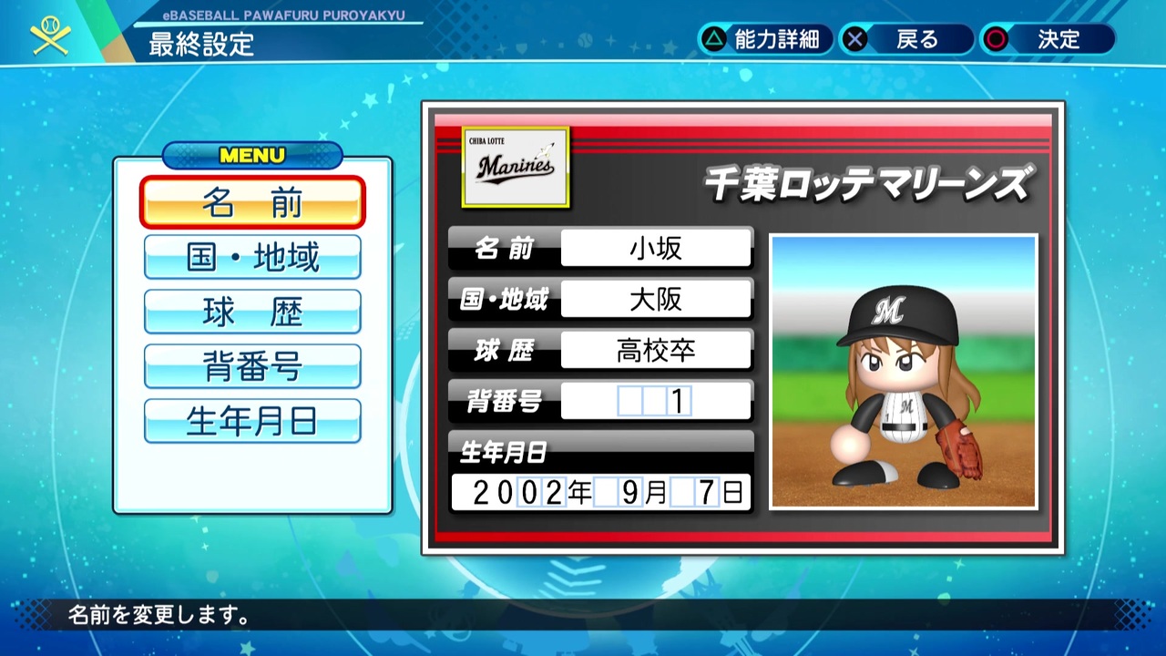 パワプロ2011 サクセス 名前変更
